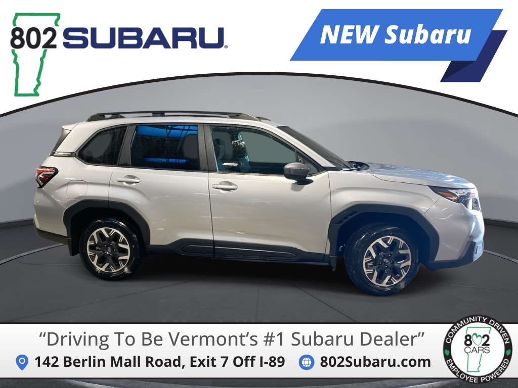 802 Subaru is proud to present you with another True Market Priced Vehicle. This 2026 Subaru Forester Premium is loaded with the following Factory Options: Power Rear Gate and Blind Spot Detection with Rear Cross Traffic Alert (Automatic Emergency Steering, Blind-Spot Detection (BSD)/RCTA System, Emergency Lane Keep Assist, and Power Rear Gate), 4-Wheel Disc Brakes, 6 Speakers, ABS brakes, Air Conditioning, All-Weather Floor Liners, Alloy Wheels, AM/FM radio: SiriusXM with 360L, Anti-whiplash front head restraints, Auto High-beam Headlights, Automatic temperature control, Brake assist, Bumpers: body-color, Cargo Tray, Driver door bin, Driver vanity mirror, Dual front impact airbags, Dual front side impact airbags, Electronic Stability Control, Emergency communication system: MySubaru Companion (5-years free), Exterior Parking Camera Rear, Four wheel independent suspension, Front anti-roll bar, Front Bucket Seats, Front Center Armrest, Front dual zone A/C, Front Fog Lights, Front reading lights, Fully automatic headlights, Heated Door Mirrors, Heated Front Bucket Seats, Heated Front Seats, Illuminated entry, Knee airbag, Leather steering wheel, Low tire pressure warning, Occupant sensing airbag, Outside temperature display, Overhead airbag, Overhead console, Panic alarm, Passenger door bin, Passenger vanity mirror, Power door mirrors, Power Drivers Seat, Power moonroof: Panoramic, Power steering, Power windows, Premium Textured Cloth Upholstery, Radio data system, Radio: Subaru 11.6" Multimedia Plus System, Rear anti-roll bar, Rear Bumper Cover, Rear seat center armrest, Rear Seatback Protector, Rear window defroster, Rear window wiper, Remote keyless entry, Security system, Speed control, Speed-sensing steering, Splash Guards, Split folding rear seat, Spoiler, Steering wheel mounted audio controls, Tachometer, Telescoping steering wheel, Tilt steering wheel, Traction control, Trip computer, Variably intermittent wipers, and Wheels: 17" x 7.0 J Dark Metallic Aluminum-Alloy!!