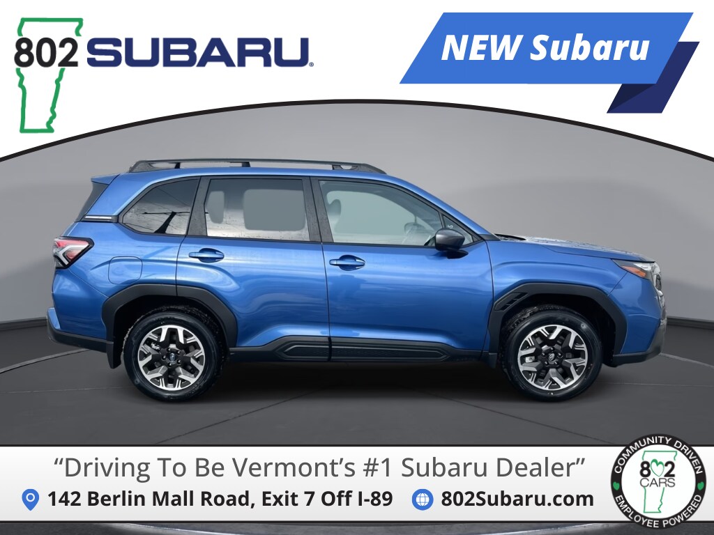 802 Subaru is proud to present you with another True Market Priced Vehicle. This 2026 Subaru Forester Premium is loaded with the following Factory Options: Power Rear Gate and Blind Spot Detection with Rear Cross Traffic Alert (Automatic Emergency Steering, Blind-Spot Detection (BSD)/RCTA System, Emergency Lane Keep Assist, and Power Rear Gate), 4-Wheel Disc Brakes, 6 Speakers, ABS brakes, Air Conditioning, All-Weather Floor Liners, Alloy Wheels, AM/FM radio: SiriusXM with 360L, Anti-whiplash front head restraints, Auto High-beam Headlights, Automatic temperature control, Brake assist, Bumpers: body-color, Cargo Tray, Driver door bin, Driver vanity mirror, Dual front impact airbags, Dual front side impact airbags, Electronic Stability Control, Emergency communication system: MySubaru Companion (5-years free), Exterior Parking Camera Rear, Four wheel independent suspension, Front anti-roll bar, Front Bucket Seats, Front Center Armrest, Front dual zone A/C, Front Fog Lights, Front reading lights, Fully automatic headlights, Heated Door Mirrors, Heated Front Bucket Seats, Heated Front Seats, Illuminated entry, Knee airbag, Leather steering wheel, Low tire pressure warning, Occupant sensing airbag, Outside temperature display, Overhead airbag, Overhead console, Panic alarm, Passenger door bin, Passenger vanity mirror, Power door mirrors, Power Drivers Seat, Power moonroof: Panoramic, Power steering, Power windows, Premium Textured Cloth Upholstery, Radio data system, Radio: Subaru 11.6" Multimedia Plus System, Rear anti-roll bar, Rear Bumper Cover, Rear seat center armrest, Rear Seatback Protector, Rear window defroster, Rear window wiper, Remote keyless entry, Security system, Speed control, Speed-sensing steering, Splash Guards, Split folding rear seat, Spoiler, Steering wheel mounted audio controls, Tachometer, Telescoping steering wheel, Tilt steering wheel, Traction control, Trip computer, Variably intermittent wipers, and Wheels: 17" x 7.0 J Dark Metallic Aluminum-Alloy!!